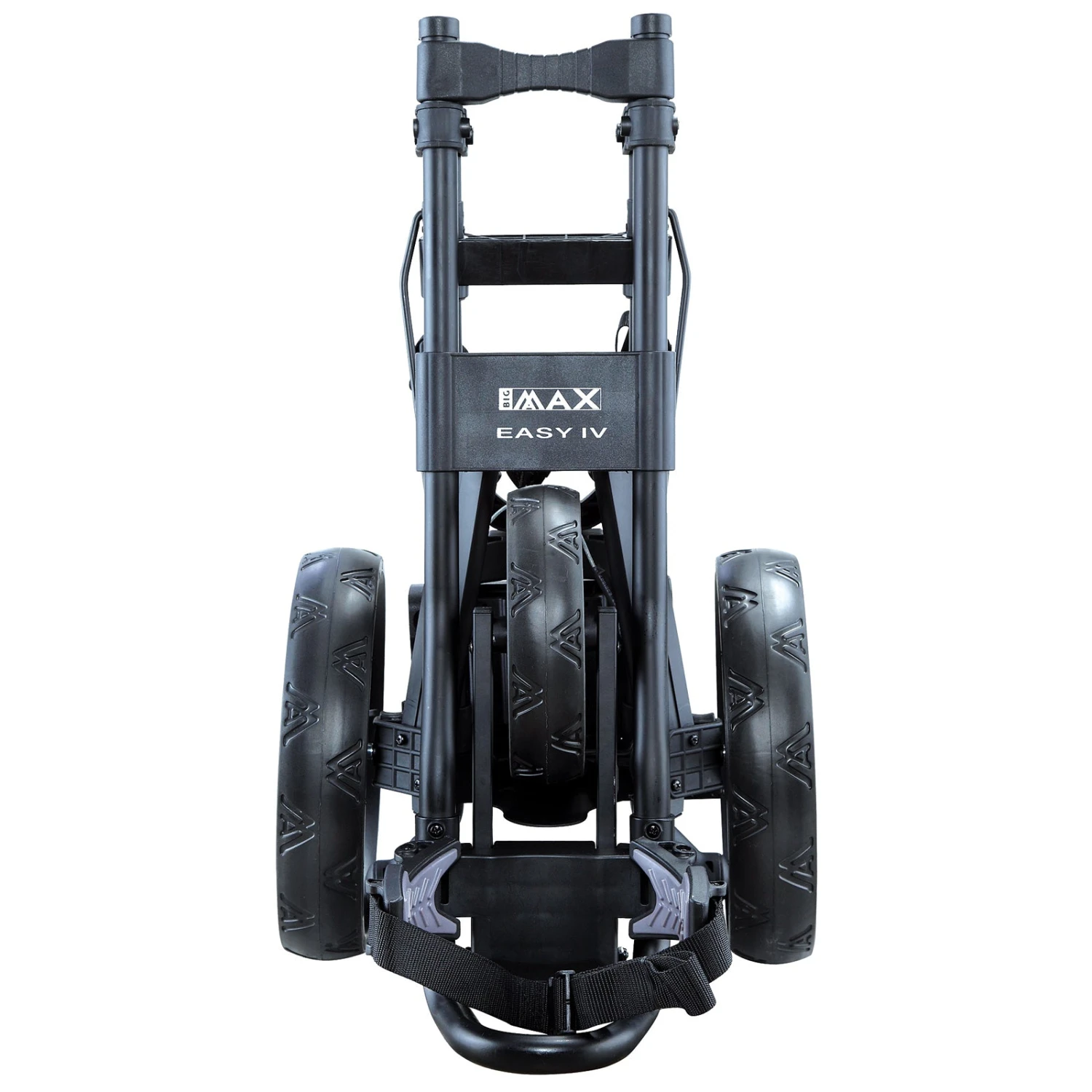 The Big Max Easy IV golf trolley is practical and of a generous size with the height of the trolley, its grip and the bag bracket all being adjustable. It is a 3-wheel push trolley with a quick-release folding system and a foldable front wheel. New ultra-light wheels and features a scorecard holder, a push on/off brake, a QF base for umbrella holder or PDA holder and a comfortable and adjustable grip handle.