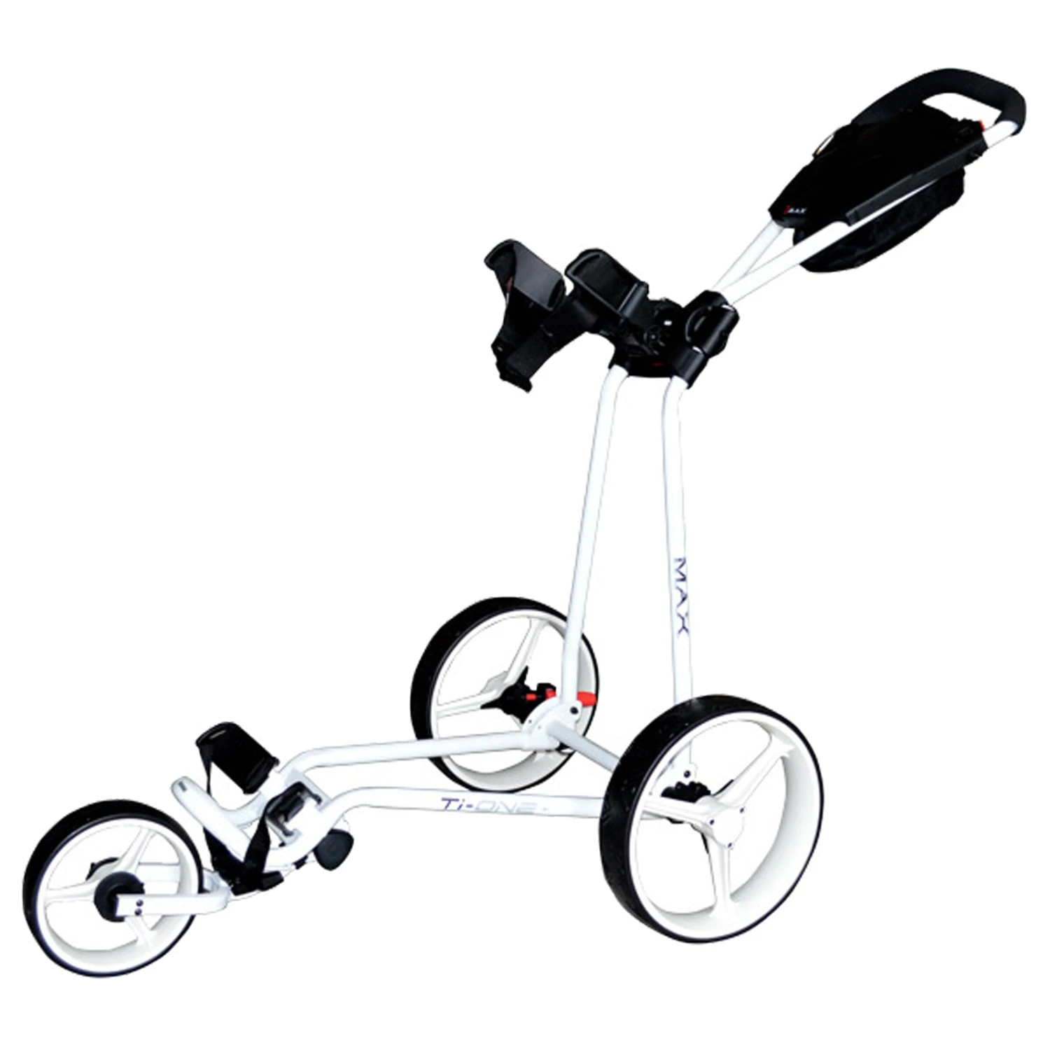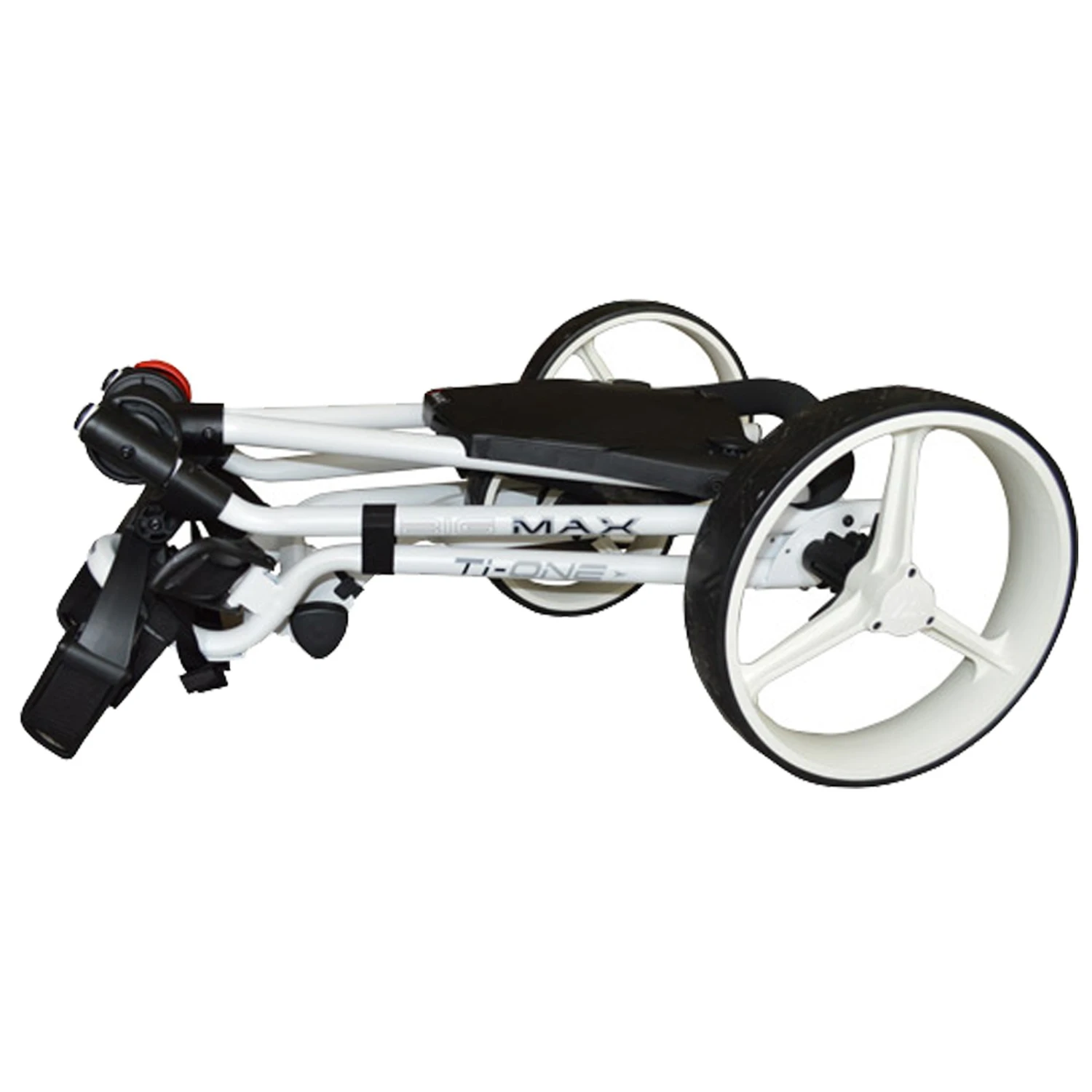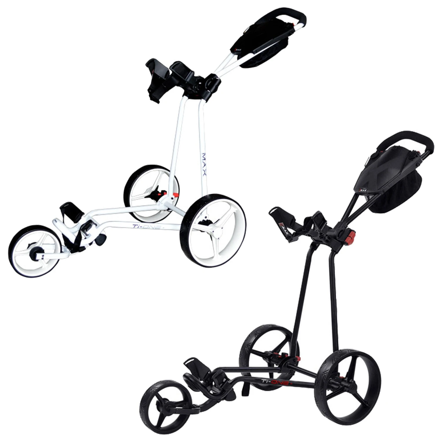 The Big Max Ti One 3-Wheel Trolley features a compact and stable design with a height adjustable handle and a quick fold mechanism. The Ti One Golf Trolley supersedes the popular Ti1000, the quick fold mechanism allows you to put up or take down in seconds while the adjustable handle design makes it suitable for golfers of all heights. All bag sizes will fit on the Ti One 3-Wheel Golf Trolley as the brackets have been designed to provide a secure fit even on the hilliest of golf courses. An all new premium organiser has been fitted to the Ti One Trolley and provides you with an excellent amount of “within arms reach” storage for your smaller accessories like balls, tees, scorecard and a cheeky chocolate bar.