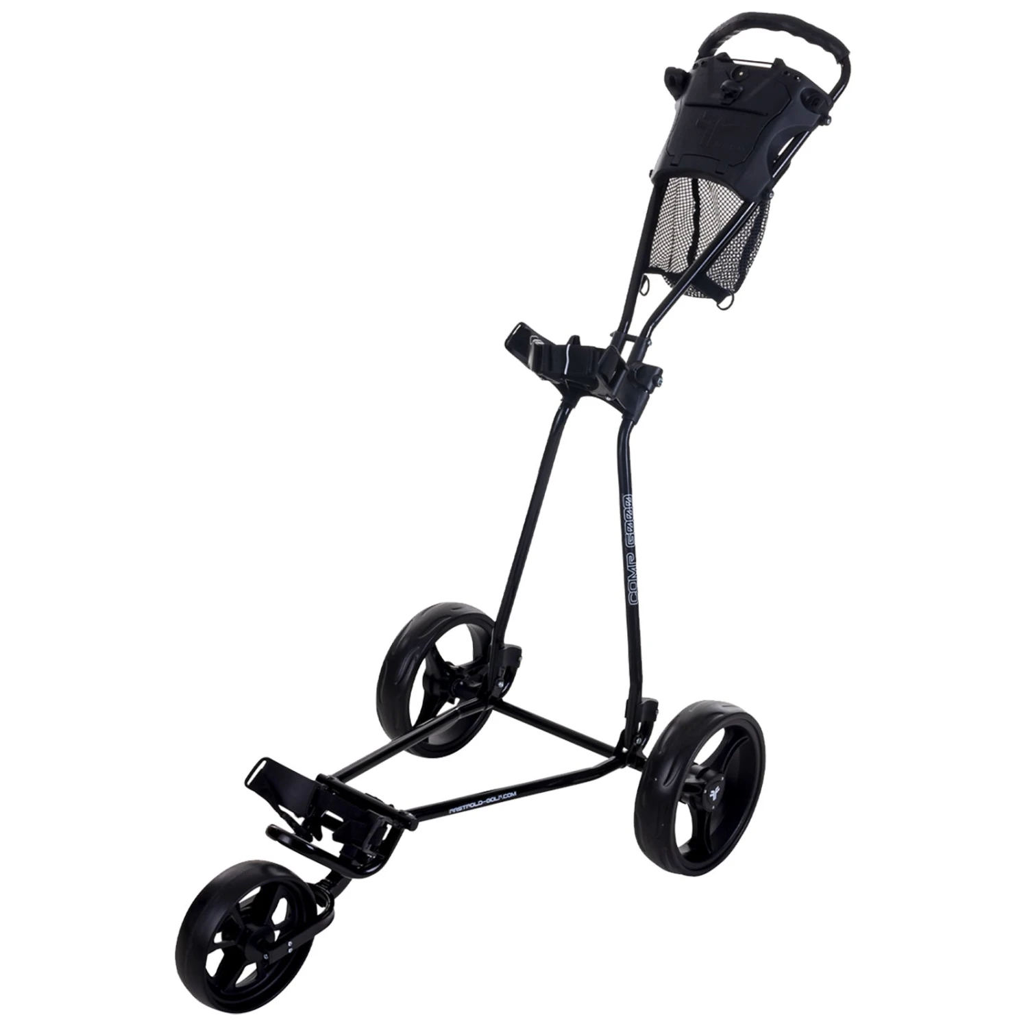 This golf trolley from Fastfold impresses with its modern and high-quality look and is the ideal means of transport for your equipment on the golf course. It is super easy to push or pull back and forth thanks to its ergonomic design, large wheels and comfortable handle. The compact mesh bag on the handle offers you space for your drinks or other accessories. Its practical folding mechanism is perfect for easier transport.