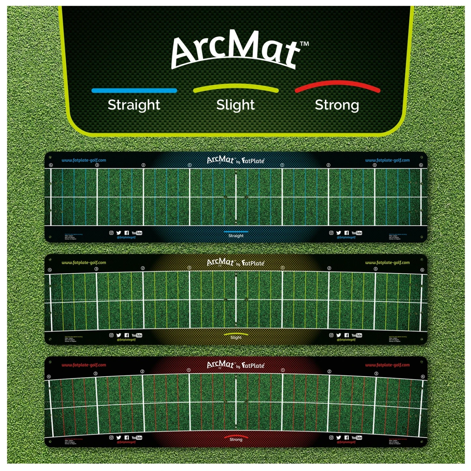 - If you prefer to rock your shoulders & swing straight back & through then opt for an ArcMat Straight. If you like to feel an exaggerated stroke arc then opt for ArcMat Strong. If you’re anywhere in between the two previous beliefs then opt for ArcMat Slight.