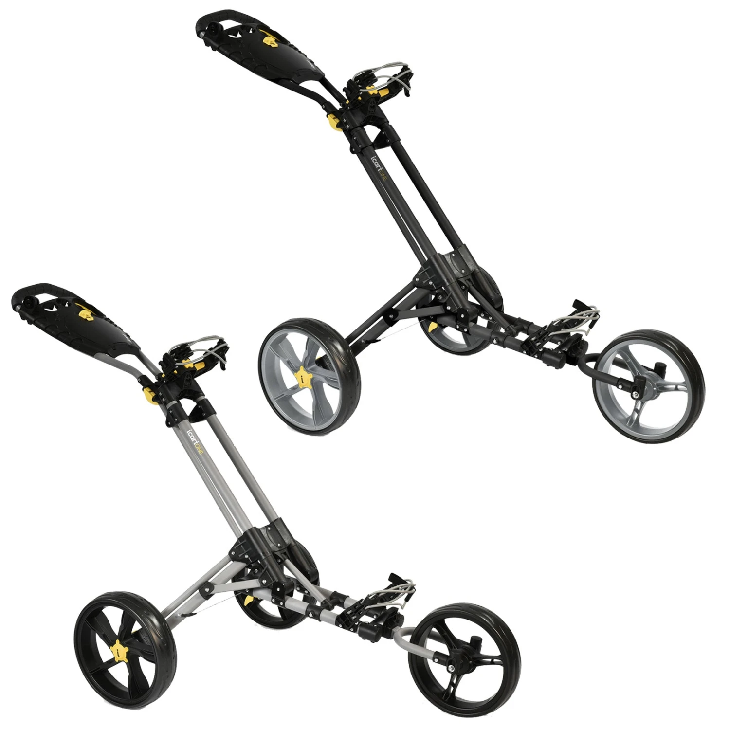 The iCart One has a wider wheel base when open compared to the iCart One and comes with a free umbrella holder.
