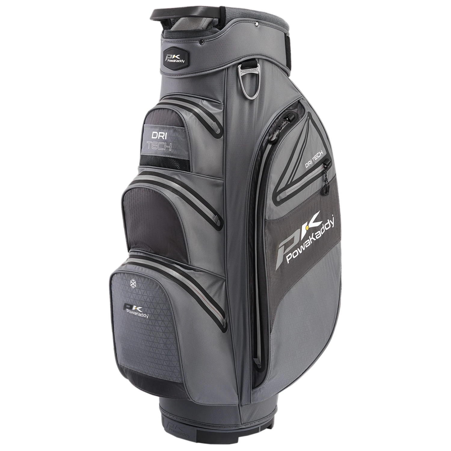 The PowaKaddy Dri Tech cart bag is a 100% fully waterproof bag using a hydrostatic rated fabric of over 10,000mm. Using a cutting-edge super-lightweight Nylon fabric, as well as a superior heat welded seam-sealing method and a special coating, the Dri Tech bag offers unrivalled waterproof performance.