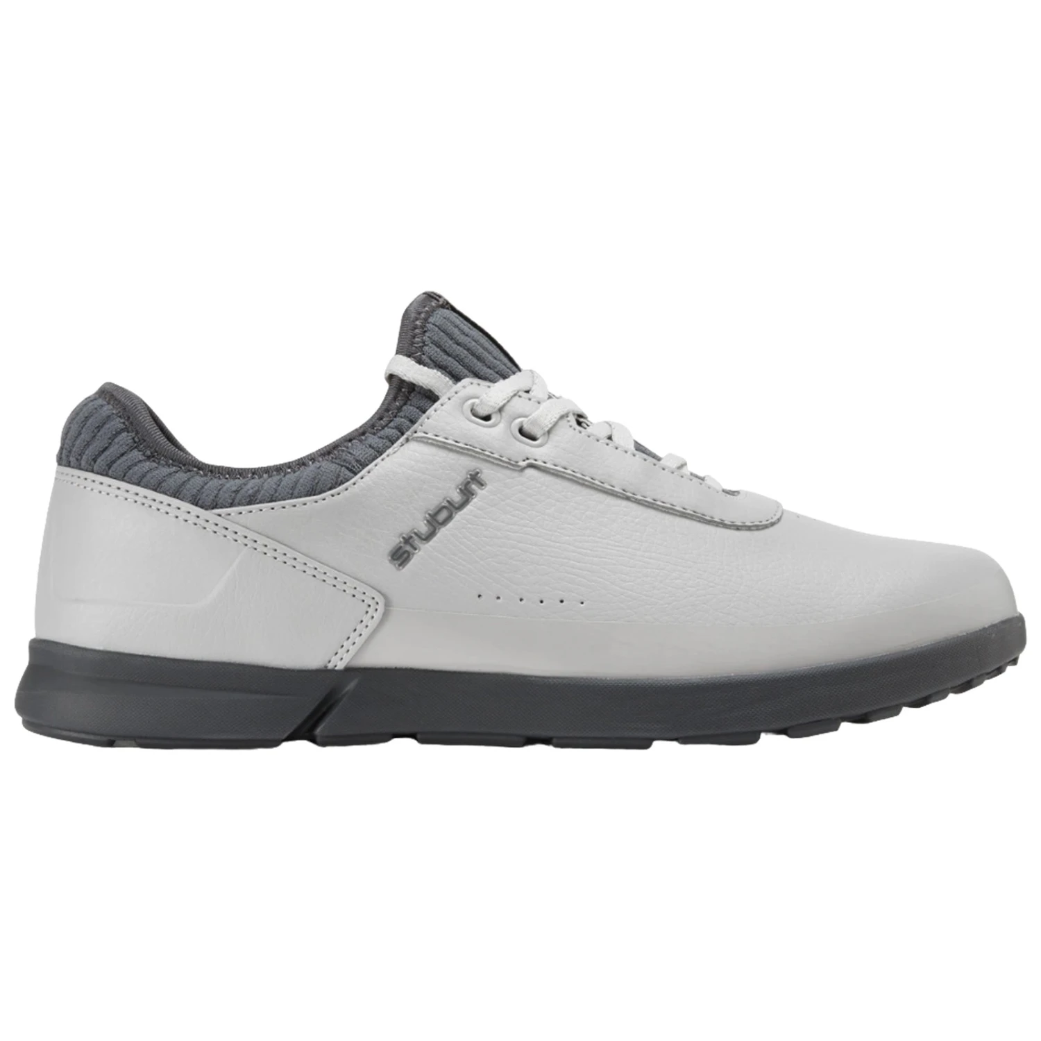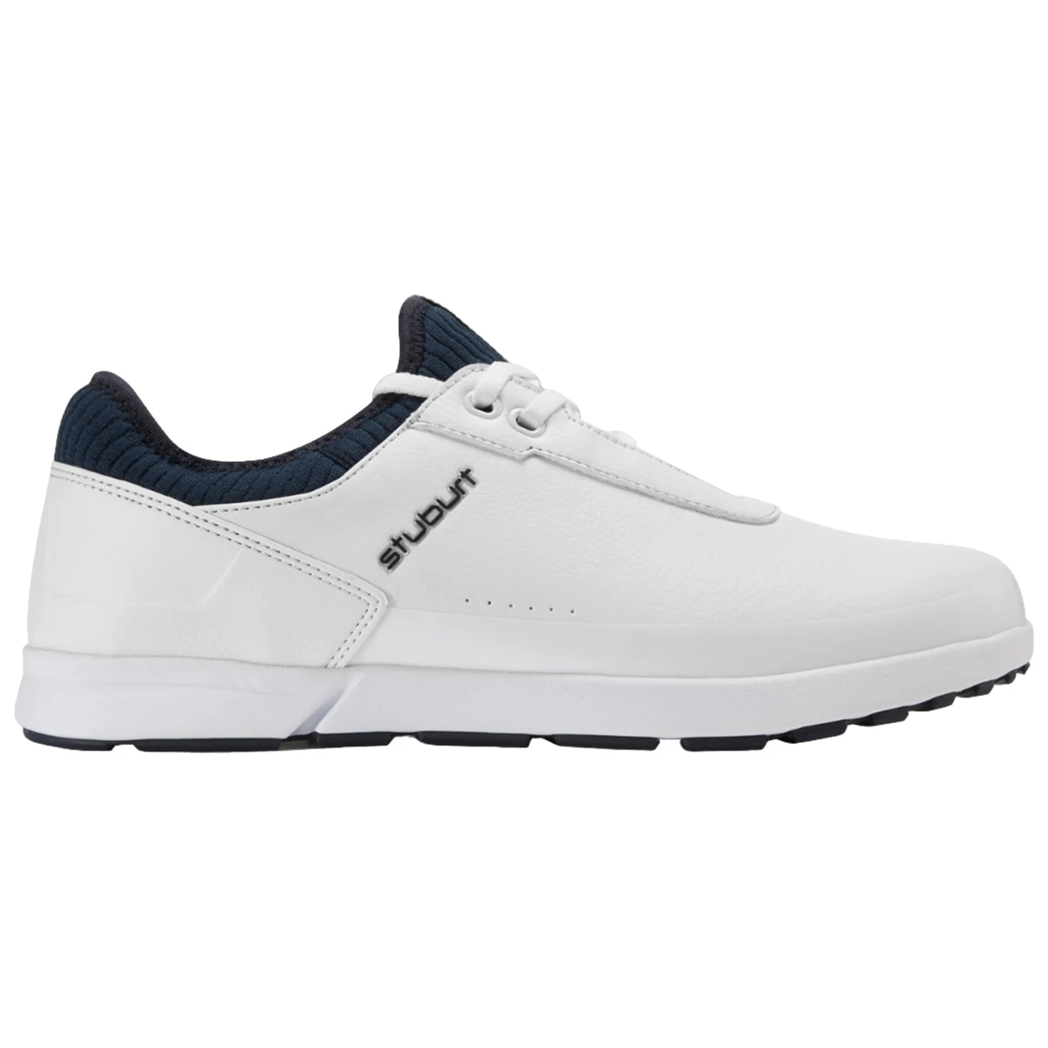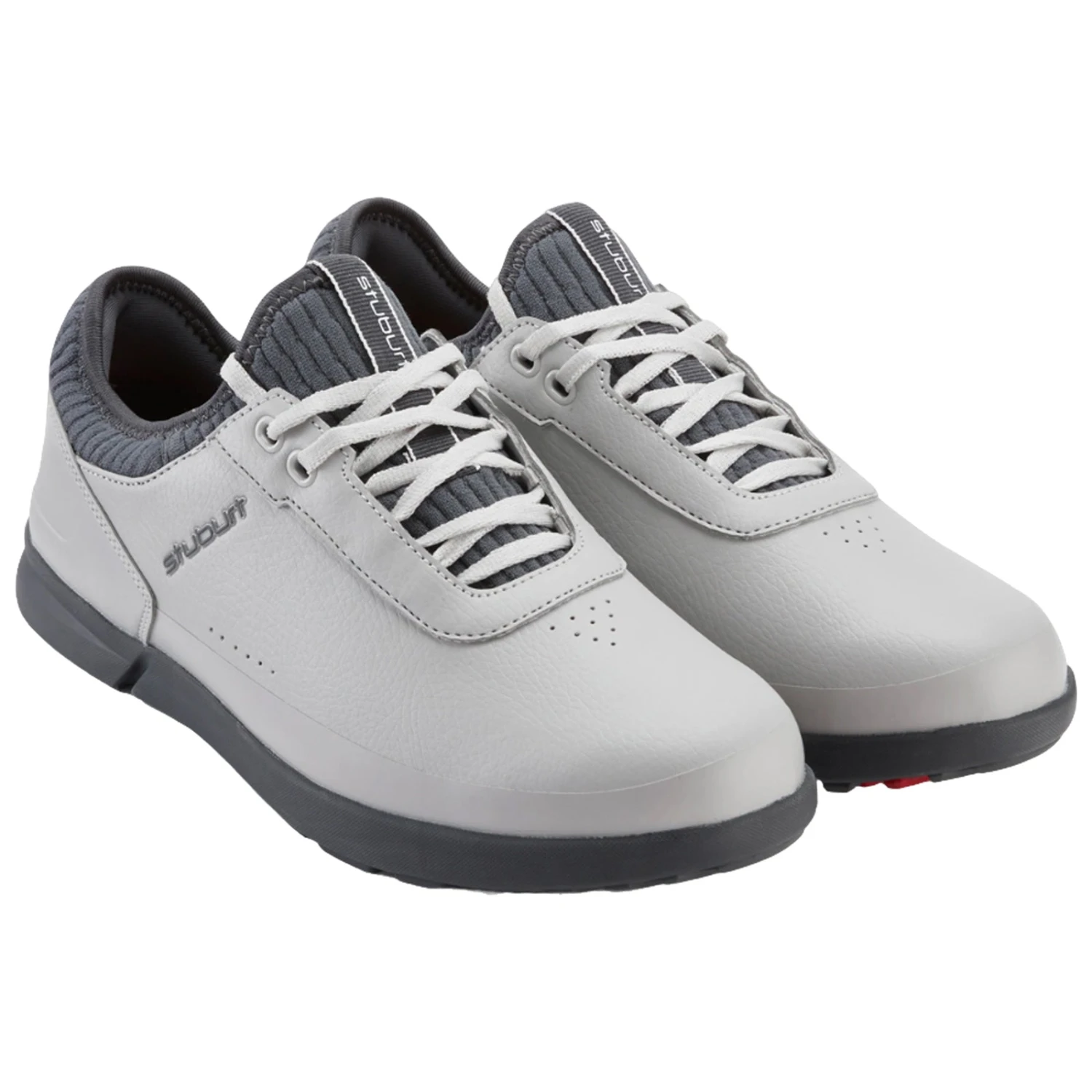 The EVOLUTION CASUAL bridges the high street and the golf course. Casual styling and the new Stuburt DUAL outsole provide comfort and performance any-wear you choose, while perforated soft grain PU uppers combine with our new Sock-Fit system for long lasting breathability and comfort. Subtle stitch and print details including raised soft sheen branding mark this hybrid trainer out as the perfect choice wherever you’re heading.